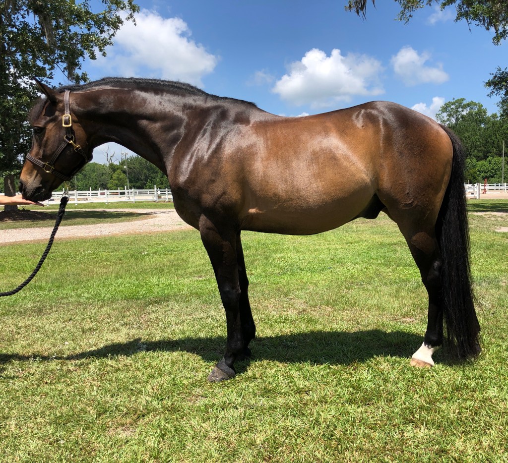 14.1 3/4h. Top of the line Regular large pony gelding. Has it all, beautiful mover, 10 jump, huge stride, super brave to the jumps.